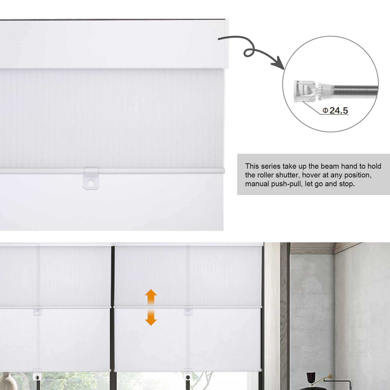 【Front Material】 Polyester,Pespective Fabric.Back Material:Polyester, full blackout, water-proof and easily washable, suitable for multiple applications like bedrooms, offices and toilets. 【Safe cordless system】Integrated double-layer design, simple mechanism.Easy to manage /...
