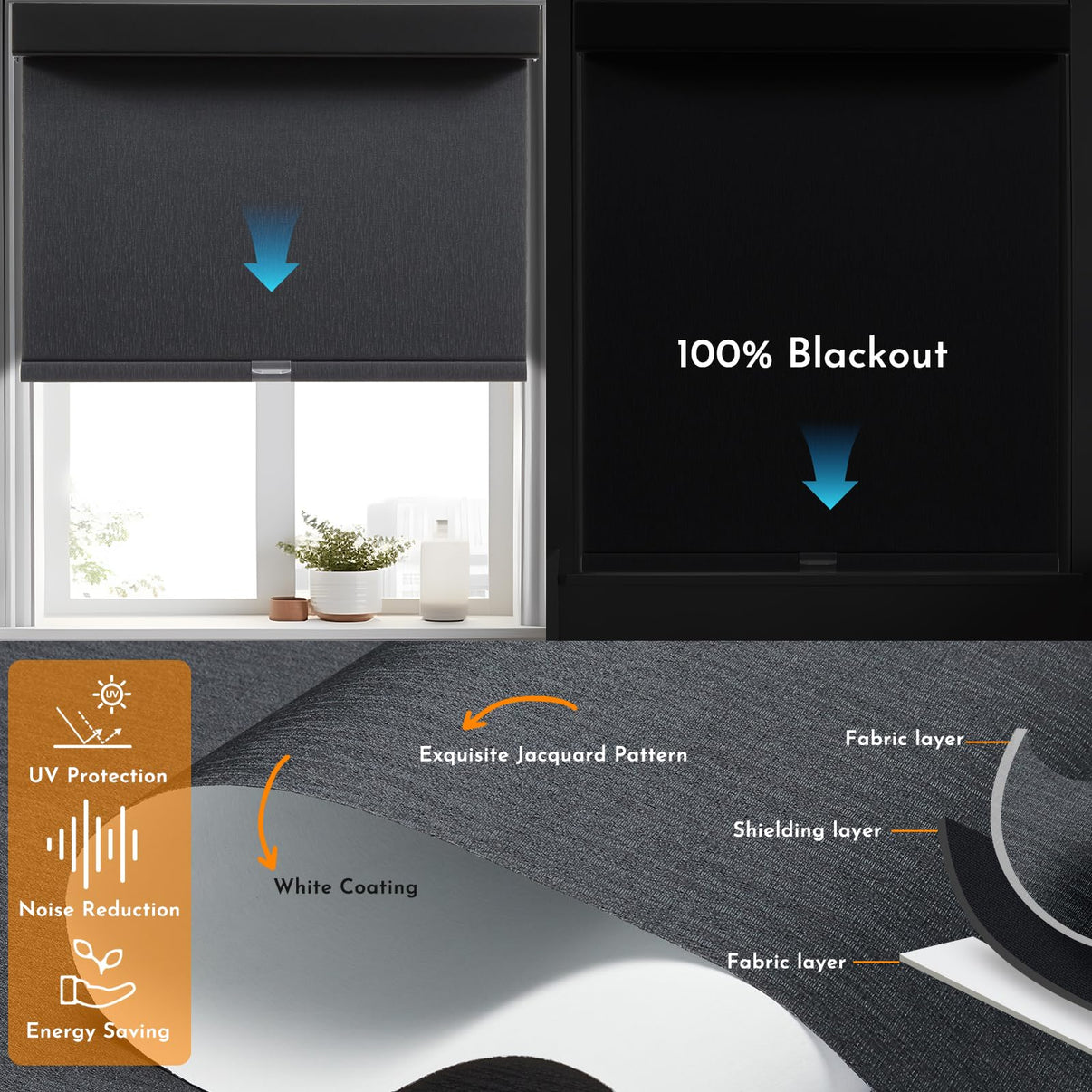 - 【Material】100% blackout polyester fabric provides room darkening environment. Motorized blackout shades can keep energy, reduce noise, keep privacy, and protect from UV rays. Cordless design provides a child/pet-saving environment. Suitable for living room, bedroom, kids' room, home office, media room, office, etc. Indoor use only.